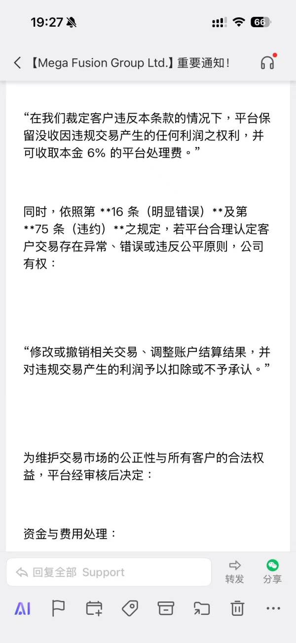 【重磅曝光】安汇Mega平台疑似恶意判定违规、无法出金!本人要求退还本金1.5万美元!