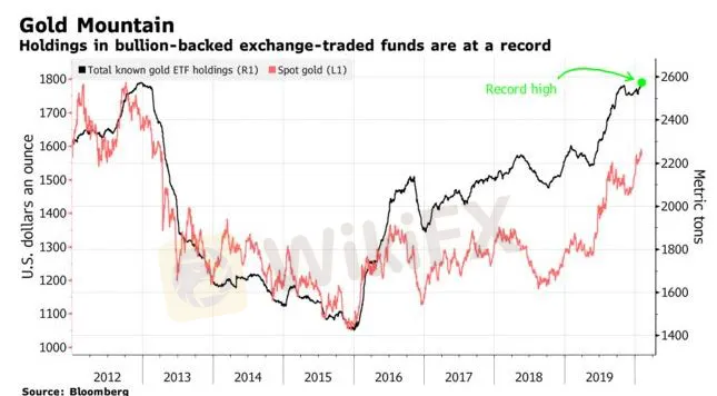 據彭博社統計顯示,全球黃金ETF的持倉量上周攀升至2573.9噸,全球ETF黃金持有量上一次達到如此高的水平是在2012年12月,當時美聯儲將利率維持在接近零水平,同時增加了QE資產購買計劃,以提振經濟成長並降低失業率,為黃金提供了良好的持有條件。