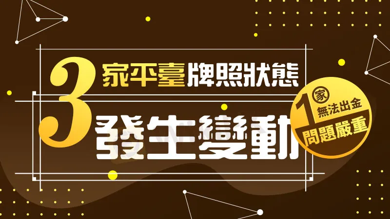 本周共有3家平台牌照狀態發生變動,其中有一家當前已經無法出金。