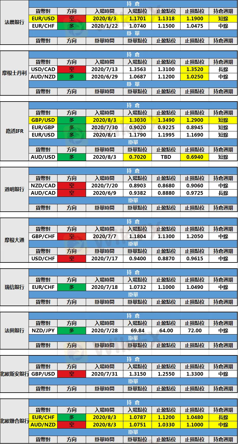 (2)摩根士丹利修改美元/加元空頭持倉止損至1.3520;修改澳元/紐元多頭持倉止損至1.0250。
