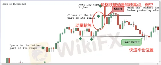 4:市場價格一旦高於動量蠟燭最低價,做多!反之市場價格一旦低於動量蠟燭最高價,做空。