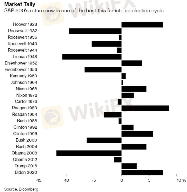 目前美國股票市場的現實與特朗普對競爭對手的預測正好相反(特朗普曾經預言,拜登當選,美股將崩盤)。自大選日以來,標準普爾500指數飆升了7.7%,為90年來第二高的漲幅,幾乎是特朗普2016年獲勝後的三倍。該指數曾三次以創紀錄的價格收盤,衡量中小企業和全球資產的指標也屢創新高。