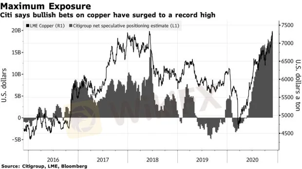 投資者大量投入資金,推動這一工業金屬在上周升至每噸7520美元的7年高點。這令不少交易商回憶起2011年上一次銅價大牛市時的場景,當時銅價曾突破每噸10000美元。而眼下,隨著全球經濟反彈的前景引發對通脹的擔憂,以及各國政府將資金投入金屬密集型的“綠色”刺激計畫,銅價似乎還可能進一步上漲。
