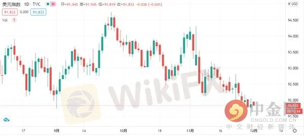 週二(12月01日)亞洲時段,美元指數震盪下跌,現交投於91.82一線。