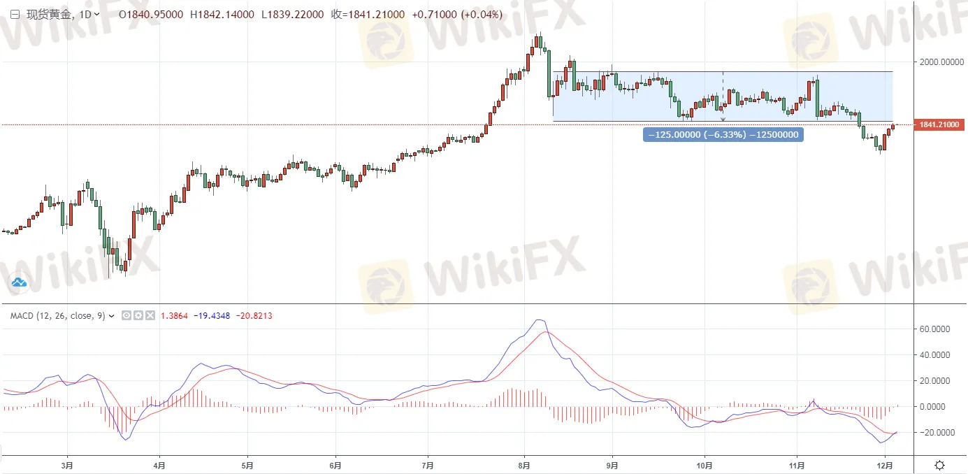 黃金方面,週五(12月4日)亞市早盤現貨黃金延續近期的強勁反彈之勢,持穩於1840關口上方,目前暫位於1841.12美元/盎司附近整理交投。由於近期美元持續走低,此外市場預期更大刺 激方案均提振了市場對於黃金的需求,金價站上1840關口。