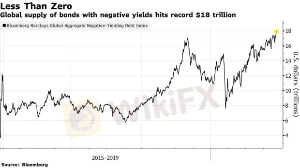 據彭博社報導,全球負收益債券規模已膨脹到一個新的紀錄,這表明投資者對避險資產的需求與對高風險資產的需求一樣強烈。彭博巴克萊全球負收益債券指數的市值週四升至18.04萬億美元,創歷史新高。