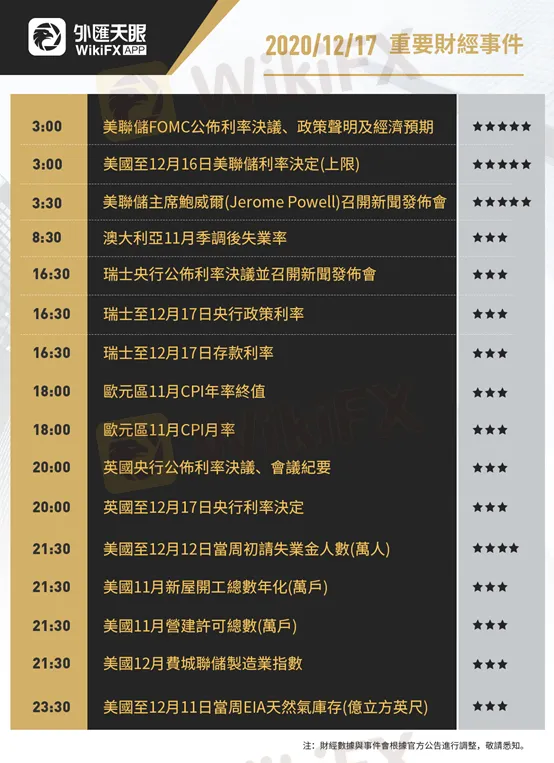 以下為12月17日(週四)重要財經事件,更多資訊,請關注外匯天眼APP或官方網站!