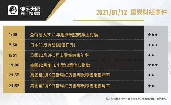 以下為1月12日(周二)重要財經事件,更多資訊,請關注外匯天眼APP或官方網站!