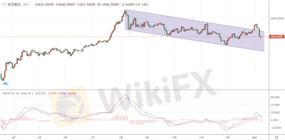黃金方面,週二(1月12日)亞市早盤現貨黃金雖微幅走高,但疲態盡顯,目前暫報1845.48美元/盎司。由於美國總統特朗普同意有序地進行權力交接,此外美元走強和美國國債收益率上升,黃金的魅力被削弱,金價暫維持1845美元/盎司附近整理交投。