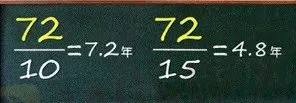 另外還有一個“七十二法則”可以幫助我們輕鬆算出本金翻一倍所需要的時間。