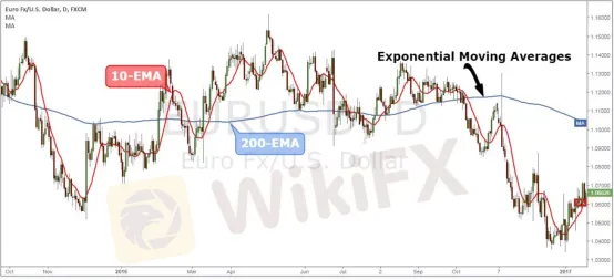 在趨勢交易中,均線是最常用的交易指標,其中指數移動平均線(EMA)常用於確定市場的主要趨勢,它還可以提供支撐和阻力水準來指導交易。