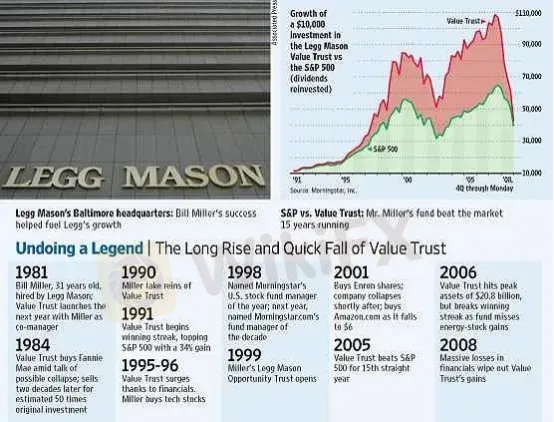 可能很多投資者都聽說過比爾米勒的傳奇投資故事。他曾經是金融業的超級巨星,不僅被評為“十年基金經理”,還是全球金融界十大傳奇投資人之一。他所管理的基金連續15年戰勝標普,這是至今無人打破的記錄。這個紀錄已經遠遠超過我們耳熟能詳的彼得·林奇,而且在比爾·米勒之前,甚至沒有一個公募基金經理能夠連續10年戰勝市場。