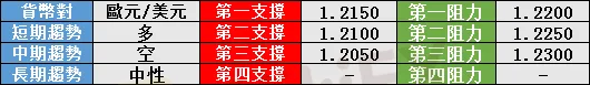 歐元/美元上一交易日走高至1.2150水準上方,今日早盤匯價窄幅整理,4小時級別多頭態勢未變,短期1小時呈現回落整理,日內匯價如繼續維持在1.2150水準上方則延續看多,上方阻力關注1.2250,下方支撐關注1.2100。(僅供參考)