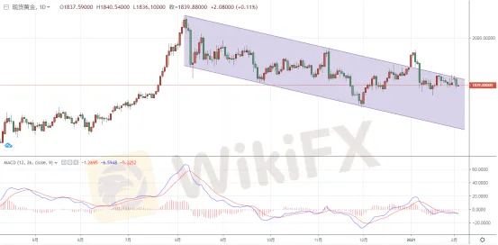 2.拜登週一在白宮會見了共和黨參議員,準備推進他的1.9萬億美元救助計畫。預計該計畫不會得到共和黨的支持,共和黨支持的救助計畫規模約為拜登計畫的三分之一。刺 激法案遲遲不能推出將抑制黃金的需求。