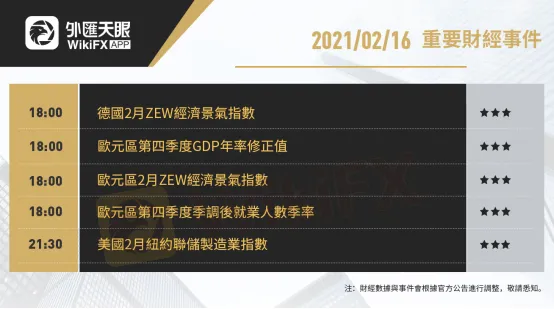 以下為2月16日(周二)重要財經事件,更多資訊,請關注外匯天眼APP或官方網站!