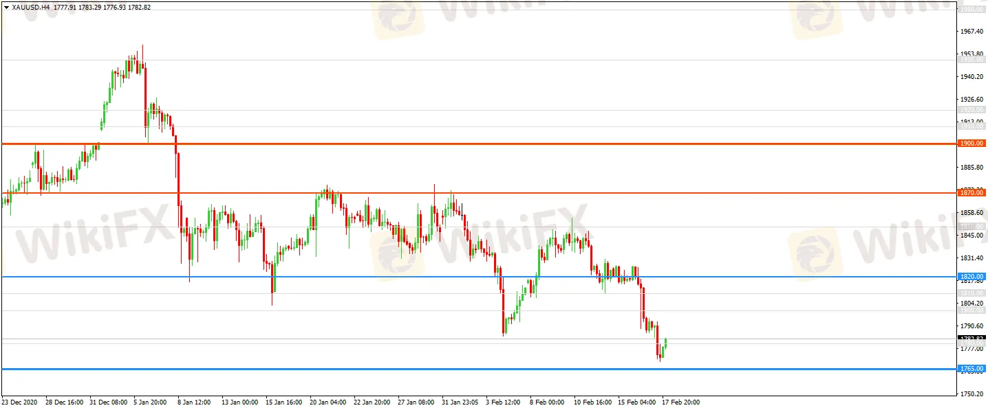 週四(2月18日),現貨黃金小幅反彈至1782美元/盎司附近,現報1782.83美元/盎司。美元指數最新報90.90。