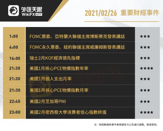 以下為2月26日(周五)重要財經事件,更多資訊,請關注外匯天眼APP或官方網站!