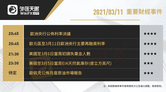 以下為3月11日(周四)重要財經事件,更多資訊,請關注外匯天眼APP或官方網站!
