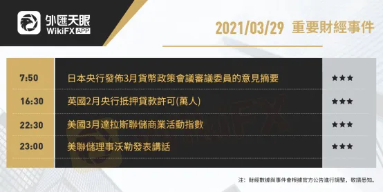 以下為3月29日(周一)重要財經事件,更多資訊,請關注外匯天眼APP或官方網站!