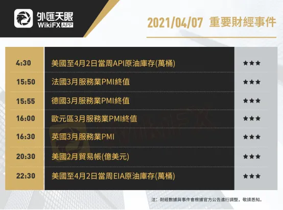 以下為4月7日(周三)重要財經事件,更多資訊,請關注外匯天眼APP或官方網站!