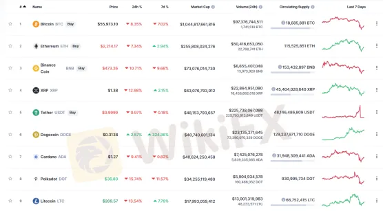 時間來到週一,數字貨幣普遍稍微收復了失地。目前,比特幣價格保持在接近56000美元的水準,以太幣也回到2200美元上方,狗狗幣日內已經轉漲。