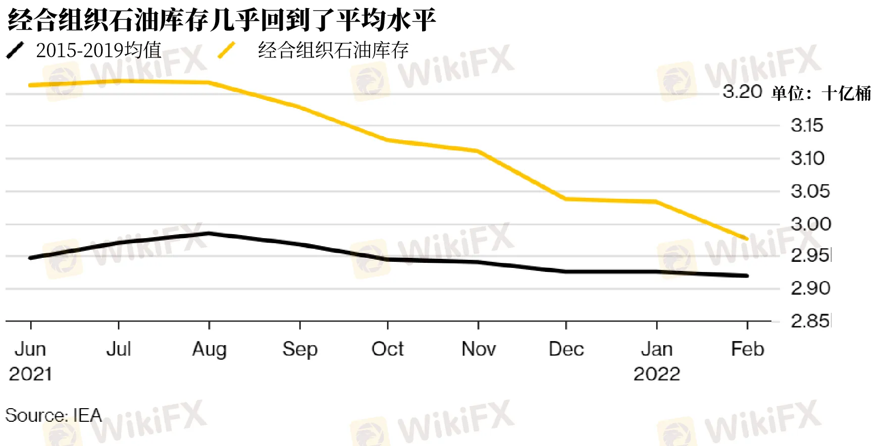 IEA估計,截至2月份,發達經濟體的原油庫存僅比5年(2015-2019)均值多出5700萬桶,遠低於去年7月份2.49億桶的峰值。