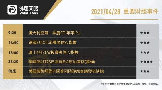 以下為4月28(周三)重要財經事件,更多資訊,請關注外匯天眼APP或官方網站!