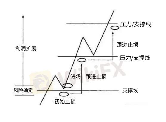進場後,根據市場的發展,也即相應的風險報酬結構變化,採用跟進止損的方式來改變倉位管理。