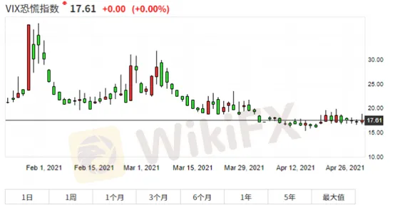 自去年3月26日以來,標普500指數持續走高,其漲幅逼近70%,與此同時VIX暴跌。VIX指數在很長一段時間內一直停留在20左右的水準,到4月初,該指數終於繼續下跌,到月中跌至16,為2020年2月以來的最低點。