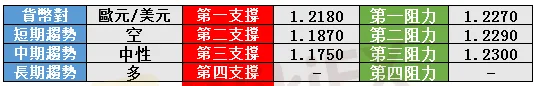目前主要貨幣對多空持倉比例如下: