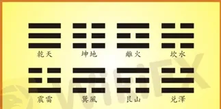 三根不同的陰陽線總共可以變化組合成八個卦像。如果把兩個卦重疊起來,每六條線構成一個“重卦”,重卦一共有6 4種變化。這就是老子《道德經》所說“道生一,一生二,二生三,三生萬物。”