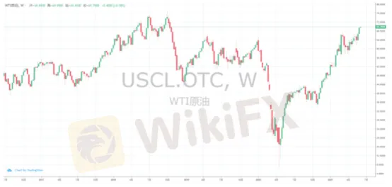 而就在上周五,布倫特原油突破自2019年以來的最高價格至72美元/桶。