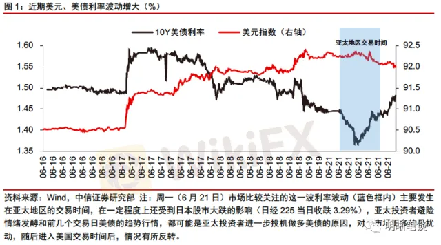 本輪美債利率的下行分為兩個階段,美聯儲6月議息會議之前是流動性過剩和拜登基建計畫受阻推動的下行,議息會議之後是流動性過剩下通脹預期下行引發的利率下行。短期而言,美債利率將在1.4%-1.6%之間震盪。我們認為最近幾日的美債利率加速下行可能是市場有些反應過度,後續通脹預期可能難以出現單邊趨勢性下行,市場當前穩定性不足,美債利率將大概率雙向波動,且波動性將有所擴大,10年期美債收益率或在1.4%-1.6%之間震盪。昨日美債利率下探1.36%附近更多是交易因素所致,我們認為10年期美債收益率不會趨勢性達到1.3%及以下水準。