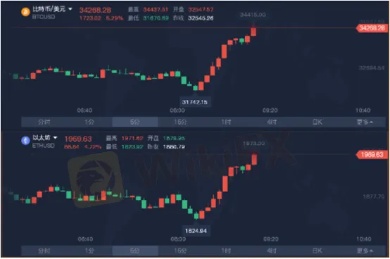 周三,加密貨幣跌勢扭轉。比特幣繼續反彈,短線漲近1200美元,站上34000美元/枚,漲幅擴大至4.2%。以太坊短線抬升逾60美元,現報1917.58美元/枚。