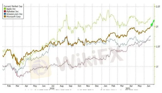 龍頭科技股集體收漲,周一收跌0.4%的特斯拉早盤轉漲,收漲近0.5%。FAANMG六大科技股中,奈飛和Facebook漲逾2%,亞馬遜、微軟和蘋果漲超1%,谷歌母公司Alphabet漲逾0.5%。微軟創收盤紀錄新高,市值突破2萬億美元。