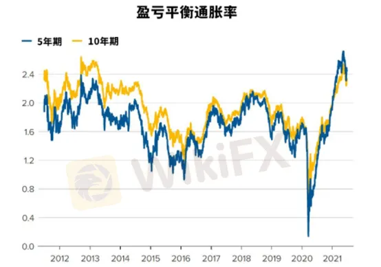 在5月份升至約8年來的最高水平後,美國的盈虧平衡通脹率一直在持續下降,這表明投資者認為通脹在未來很長一段時間內不會再保持目前的高水平。