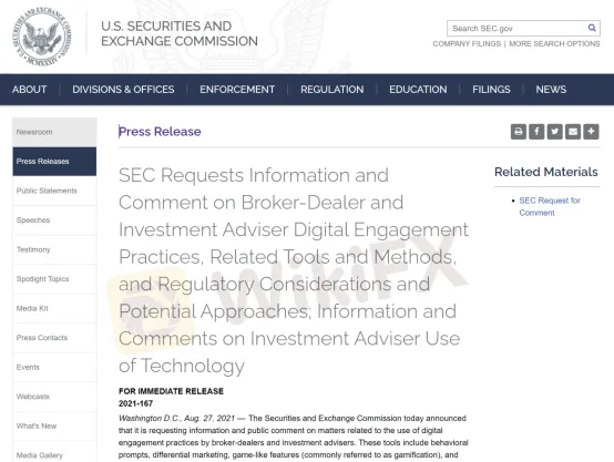 雖然線上券商和線上投資顧問或許已經強調“預測性”模型並不能保證收益,但Gensler表示,SEC希望收集投資者關於對金融平臺中類似遊戲的功能、頻繁交易的行為提示等方面的看法。