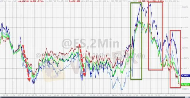 三大美國股指集體低開,盤初迅速轉漲,但午盤均轉跌,尾盤跌幅擴大,刷新日低。早盤曾漲逾200點的道瓊斯工業平均指數尾盤跌近260點。早盤一度漲超0.5%的標普500指數尾盤跌0.7%,早盤漲約0.6%的納斯達克綜合指數尾盤一度跌逾0.66%。
