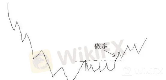 如下圖所示,那個做多的位置,是突破箱體上沿進場,局部看是「追漲殺跌」,但宏觀來看,它其實是大趨勢反轉拐頭後的一個確認點。