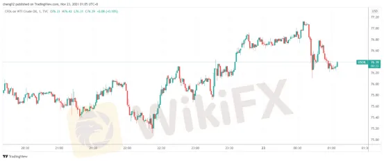 受到双方博弈影响,美油周一涨幅一度接近2%,但随着白宫即将宣布联合抛储计划的消息传出,涨幅回落至1%附近。