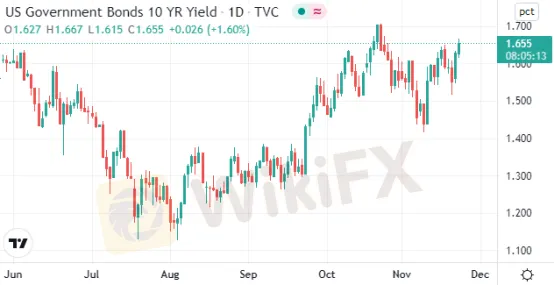 週二(11月22日)美股盤前,10年期美債收益率升至近一個月高位,現報1.65%。