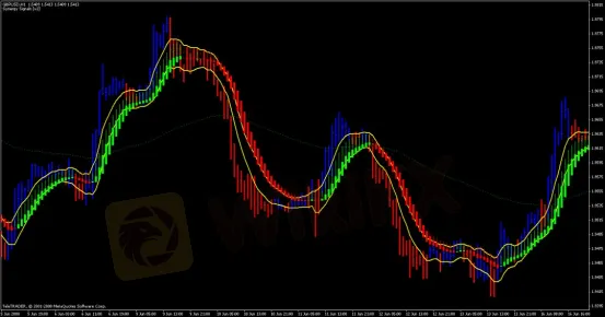 最後,有些使用邁達克MT4/5平臺的交易者可能不知道在哪里添加Heikin-Ashi圖表。在此我們簡單描述下,打開MT4/5平臺上的任一貨幣對圖表>插入>技術指標>自定義>Heikin-Ashi,再進行相關設置。(如下圖)
