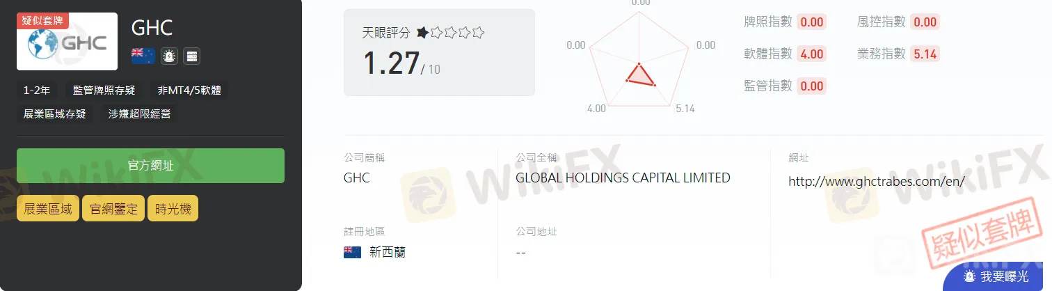 從天眼APP這邊可以看到該券商僅有1.27分,不僅網址註冊時間短只有1-2年,也無任何牌照及MT4/5交易系統涉嫌超限經營!!