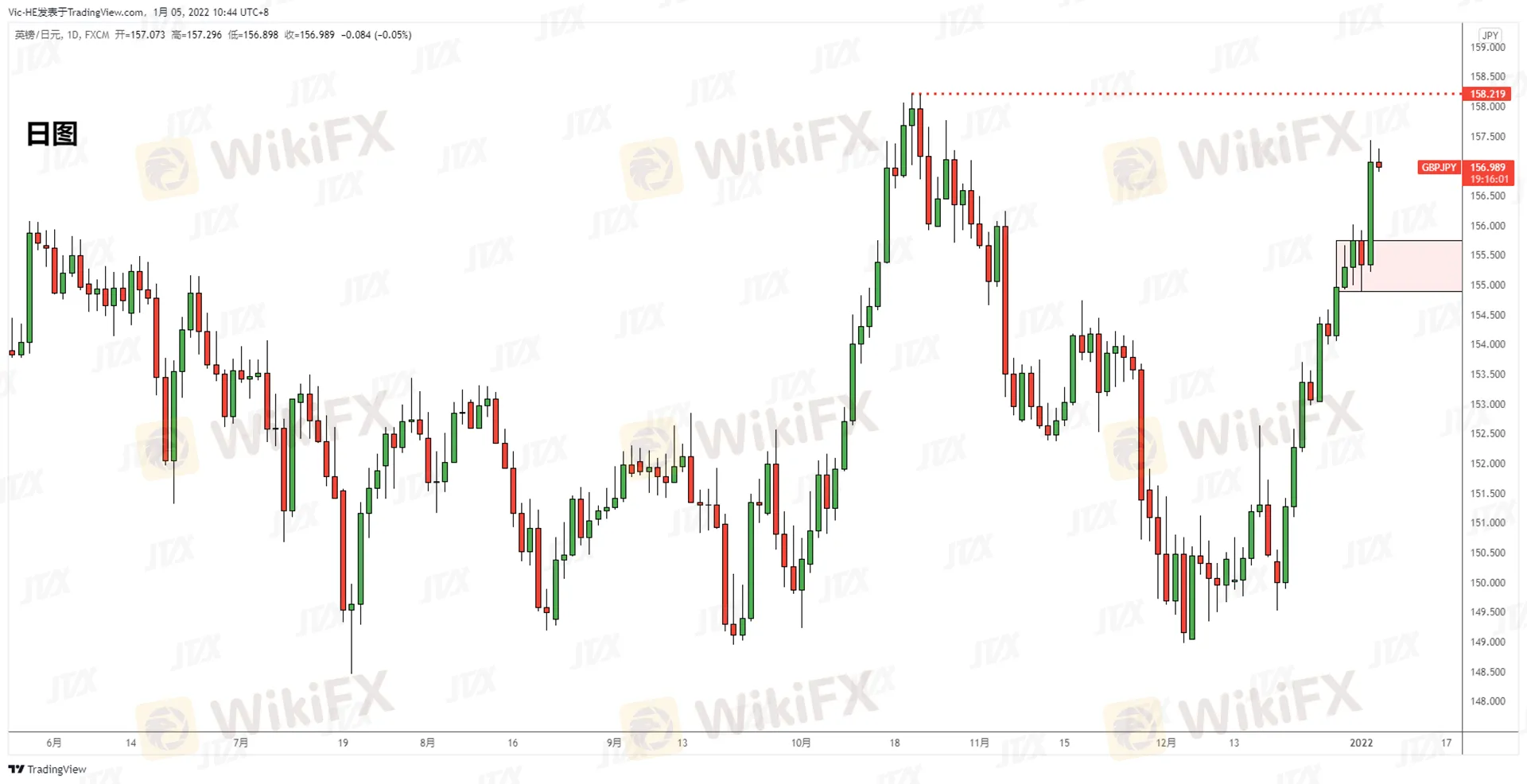 摘要:GBPJPY日線上行延續,上方阻力於158.2一線。短期支撐于156下方區域,行情小級別回落可繼續做多操作。