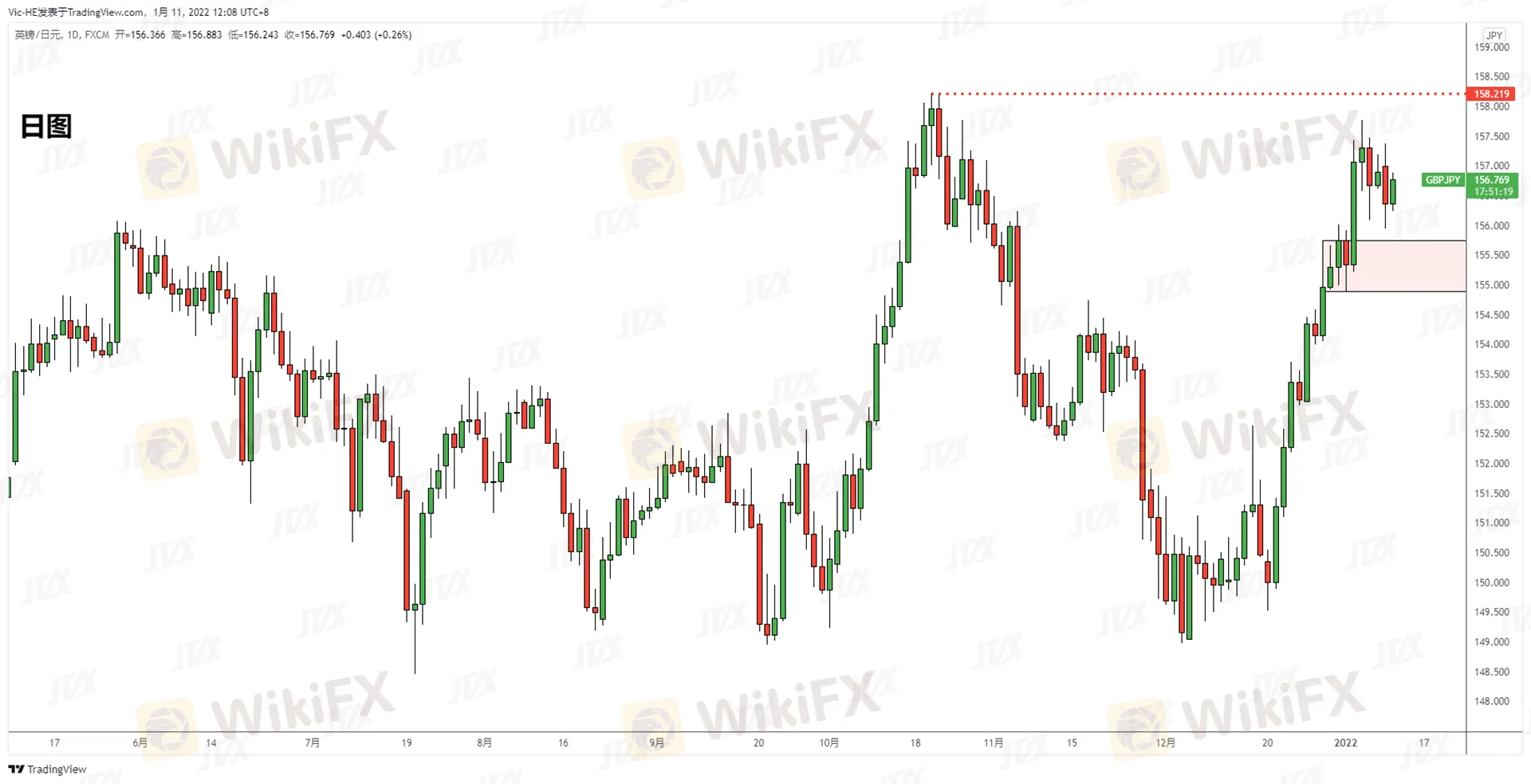 摘要:GBPJPY日線到位前高供給區配合蝙蝠形態到位,短線158不破前阻力依舊。下方支撐155.5區域,測試到位可關注小級別K反做多操作。