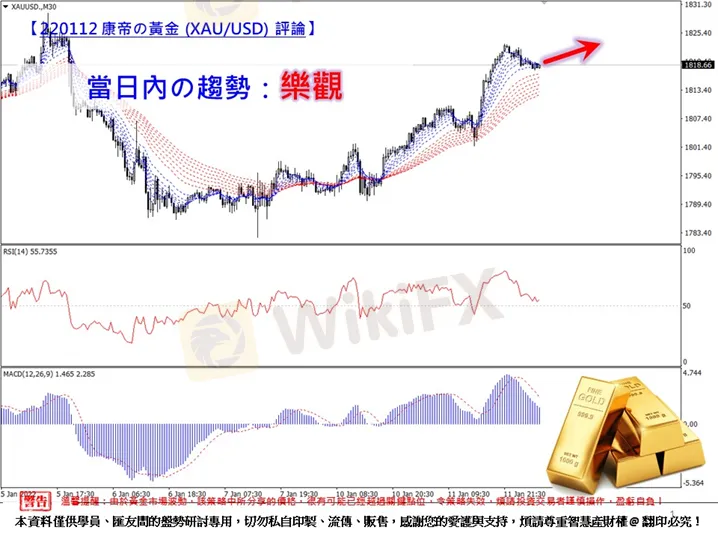 ★.技術點評:《黃金》受10年期公債殖利率短期將挑戰2%影響,將會持續支撐美元價格,令黃金價格難以守在1800美元上方;從昨11日美股開盤後,黃金期貨持續攀高至1823.0美元,期貨的成交量卻萎縮,形成背離格局,利空訊號;回歸技術面分析,雖然金價在每30分K線中MACD依舊在0軸以上,但卻出現明顯的死亡交叉,暗示這波誘多格局,即將結束;此外,可以留意每30分K線的MA藍線,是短期重要的支撐價格;從黃金選擇權資訊,本週結束前夕,有望挑戰1850價格!結論:本週行情依舊是漲勢回檔格局,凡短線的跌,都是進場的機會,但,這波的漲,誘多成份大,仍需小心謹慎交易。