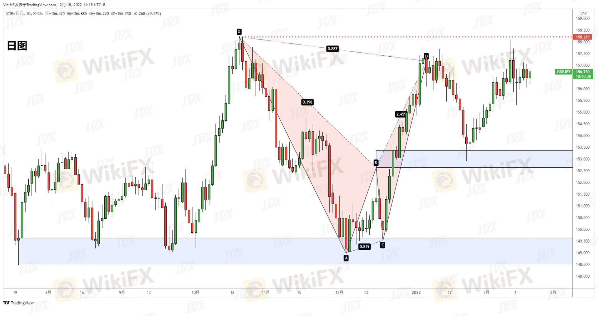 摘要:GBPJPY日線高位震盪延續,短期上方阻力於158一線不變。行情不破前短線追多謹慎,區間內可小級別高拋低吸操作依舊。