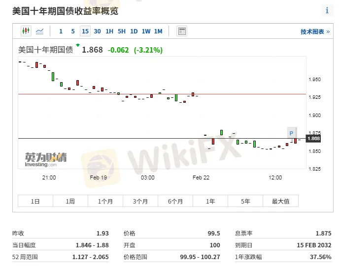 週二盤初,美債現貨市場剛一開盤便迎來了大量避險買盤,黃金、原油開盤大漲。行情數據顯示,指標10年期美債收益率週二亞市盤初開盤便直接跳水,日內跌幅一度接近8個基點,最低下探1.854%附近,創下2月4日以來新低。