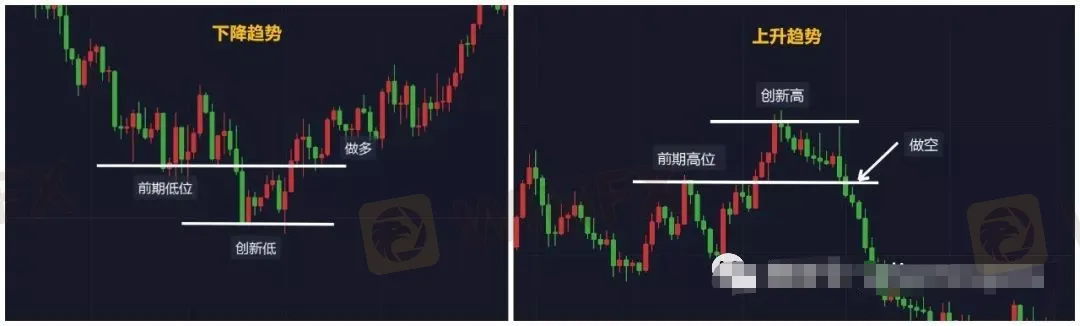 走勢3:上升趨勢中,價格向下擊穿先前的短期回調低點,或下降趨勢中,價格突破先前的短期反彈高點。