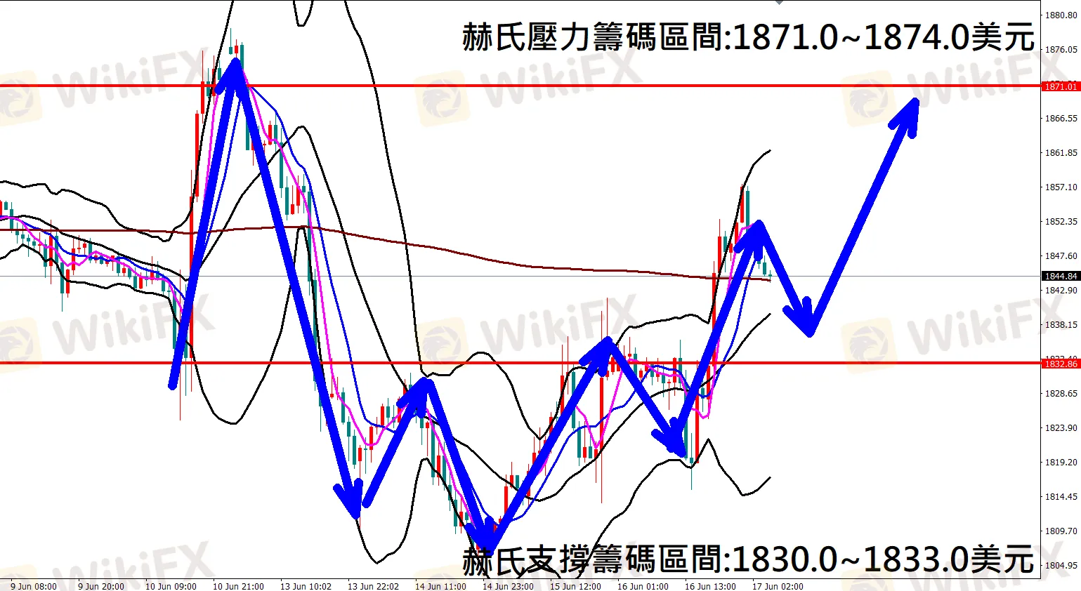 偏多思路為主,可在布林通道中軌附近1844.0~1846.0佈局多單進場